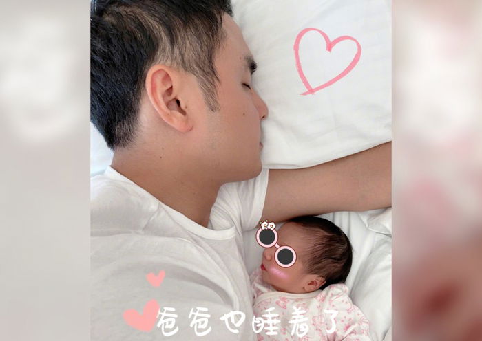This morning (Aug 30), the 43-year-old star posted two photos to his Weibo page, one showing him lying next to the infant and another of the baby grasping tightly to an adult’s finger.
