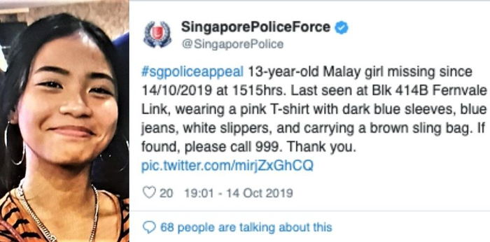 But just when we thought our kids might be safe, on 14 October, the Singapore Police Force released news that a 13-year-old Malay girl has been missing since yesterday 14 October 2019 from 3.15 pm.