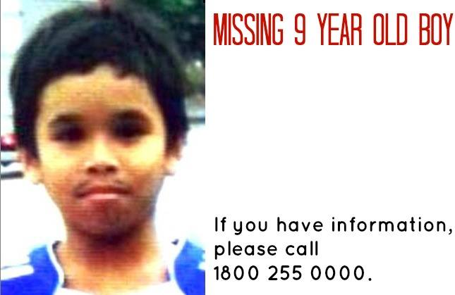 A nine-year-old Malay boy has been missing since 15 July 2013, Monday. Muhammad Muzzaqir Bin Salim, the missing child, was last seen in Bedok North Avenue 4, Blk 101, around 6.30pm, before his disappearance. It’s been reported that he was dressed in a white T-shirt with black prints, along with black shorts.