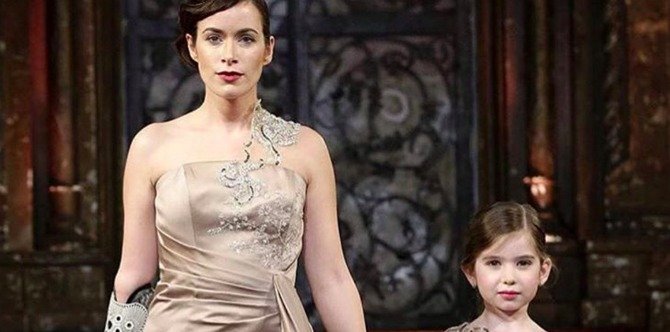 Her ‘mini-me’, Gianna Schiavone, 6, was born without a left forearm. Hand in hand, Rebekah and Gianna wowed the crowd wearing stunning creations by designer Josefa de Silva.