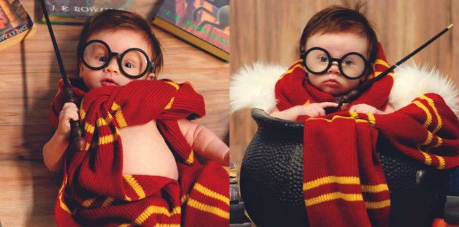 “I am a huge Harry Potter and I’d had the vision of a photo shoot in my head for a while. I knew whether I had a boy or a girl I would be using this theme and taking these pictures,” Glover told The Daily Mail. “My daughter actually has a lot of Harry Potter’s features with her captivating eyes and messy hair so she made it very easy.”