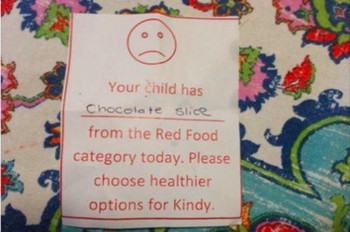 This was in response to a chocolate slice in the child’s lunchbox, which happens to fall in the ‘red food category’. While many parents expressed their disdain at the curt note from the nursery, quite a few parents felt that there was nothing ‘personal’ about the note and it was only for the child’s health that the note was sent.