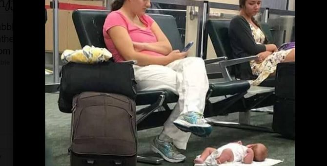 And that’s exactly what happened to Molly Lensing, a mother of three, from Illinois. An image of her looking at her cell-phone screen in the Colorado airport, with her then 2-month-old daughter, Anastasia, resting on a blanket on the airport floor, was captured in 2016.