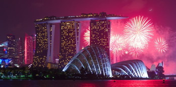 The boardwalk along The Shoppes at Marina Bay Sands is a lovely area to enjoy the fireworks with your family.