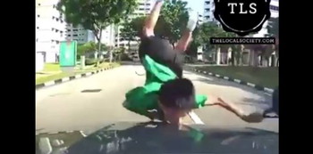 The boy then bounces off the hood. For a few moments, the boy tries to stand up, but visibly struggles. Soon other people come to his aid. One person is even seen taking a photo of the car.