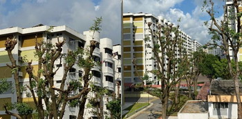 Facebook user Jessica Poh posted four photos of some trees around Block 347 Ang Mo Kio Avenue 3 last Friday (Aug 12), sharing her concerns about how the trees there had “too little foliage left” after they were pruned.