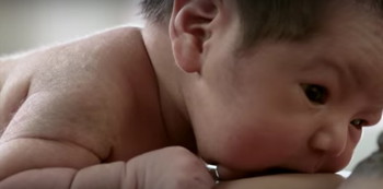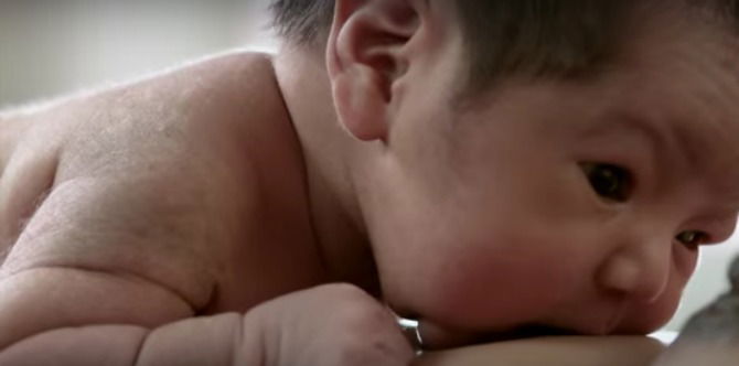 This newborn managed to find his way to his mum’s breast to latch on to, without any help!