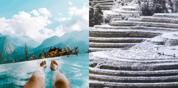 For dramatic views of rolling hills and terraced rice fields, look no further than Sapa, Vietnam. To get to Sapa, you can travel via train from Hanoi, which is about eight hours away.