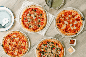 Hand-stretched frozen sourdough pizzas by Plank Sourdough Pizza.