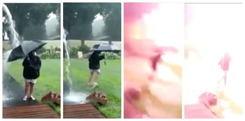 However, when he runs into the backyard, a lightning bolt suddenly strikes nearby, nearly claiming his life.