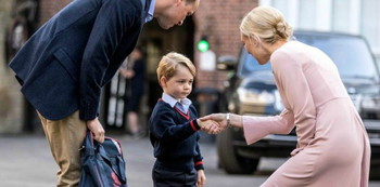 A name tag on his schoolbag revealed that he will be known as George Cambridge by classmates. He is believed to be one of the youngest in his new class.