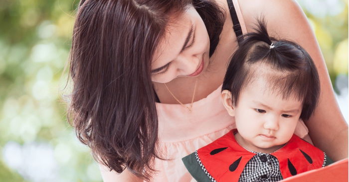 As a doctor, I would recommend starting off with songs and rhymes as early as 4 months. The baby is not going to understand a word, but when you prop her up on your lap, she is going to benefit from the activity in 2 ways. She is going to get some more bonding time with you. And secondly, she is going to start to understand the concept of a book. And this is important, so don’t read off a device. Stick to a book.