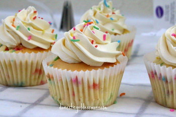 - Frost with buttercream and sprinkle more sprinkles on top.