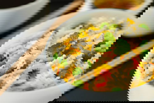Create a space in the centre of rice and add egg. Allow egg to set, then scramble. Mix rice and egg well. Dish out and serve hot.