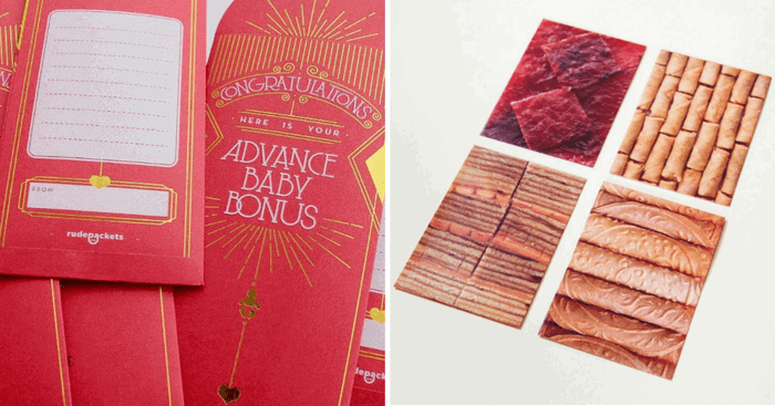 The red packets from The Grinny Packs (1 for $8, 5 for $30) are designed to make your recipient grin with glee.