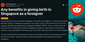 Some users suggested that these costs, combined with the lack of financial assistance available, could outweigh the benefits of giving birth in Singapore for foreigners.