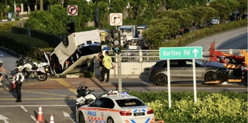 The accident took place between a silver hatchback car and a white Toyota Vellfire minivan at Upper Serangoon road. It was seen in the camera that as the Vellfire crossed the traffic lights, the Mercedes driving straight collided into the side of the minivan. As a result of the heavy impact, the Vellfire flipped.