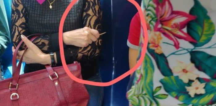 The lady’s husband offered to switch places with her but she opted to hold a toothpick at the spot where the child’s head was hitting her arm.