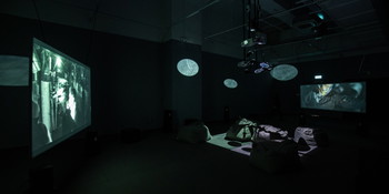 Challenging conventional ideas of spectatorship while questioning the dominance of vision in cinematic storytelling, a system of mirrors at the centre of the artwork reflects fragments of these footage onto the surrounding walls, offering new ways of meditating upon the inextricable relationship between a place and its inhabitants.