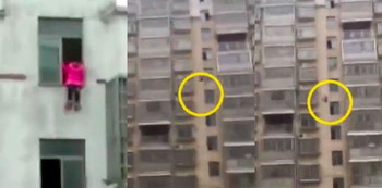 The schoolgirl jumps from a building in an attempt to take her own life because of intense academic pressure | Screenshots: Sohu video