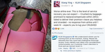 Naturally, Xiang no longer had the damaged piece of luggage. She points this out and had several other Facebook users back her point up.