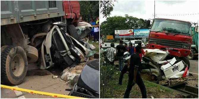 According to The Straits Times, the accident happened on Jan 3 at around 2:30 pm, at Jalan Lukut Sepang. 5 vehicles – a Honda Stream, a tipper truck, a Mercedes-Benz sport utility vehicle, a Perodua Myvi and a motorcycle were involved.