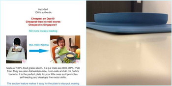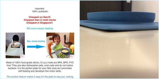 It all started when Singapore mum Kumiko Tan decided to buy an EZPZ ‘Happy Mat’ from online shopping portal Q0010. For those unaware, ‘The Happy Mat is an all-in-one placemat + plate that captures kids’ messes and SUCTIONS directly to the table. No more tipped bowls and plates!’ (Yup, we got that straight off the EZPZ site) And this is what it looked like online: