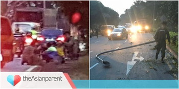 Meanwhile, ME2 Muhammad Zulhilmi, and other instructors and trainees removed the fallen lamp post, thereby clearing the way for the ambulance to arrive.