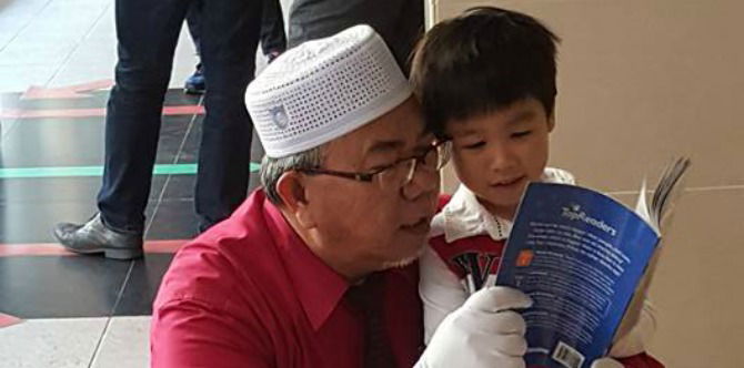 Above:”MRT Uncle” Zainodin Bin Abdul Hadi, 65, Service Ambassador at Bishan MRT station with Jovan, 4