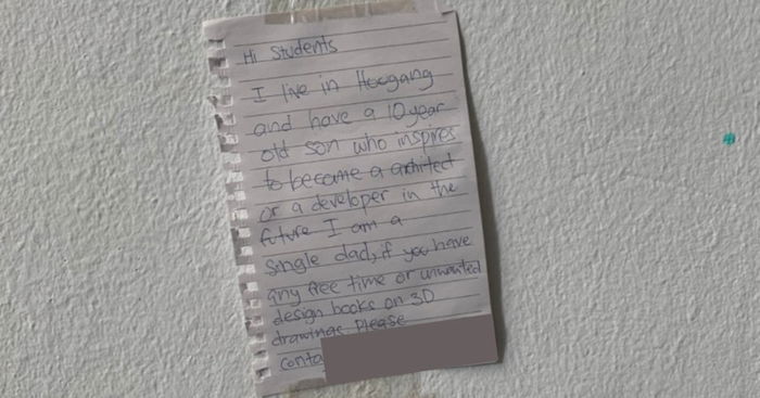 “I am a single dad, if you have any free time or unwanted design books on 3D drawings, please contact me,” he added. The father also left his name and contact number at the end of his letter as a means for the public to be in touch.