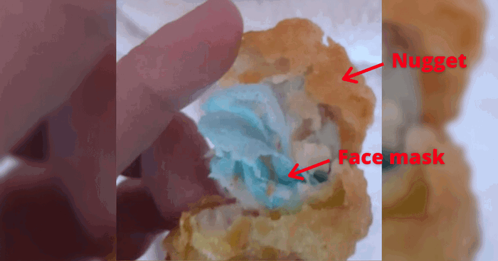Laura then discovered that a face mask had been cooked into the nugget mixture.