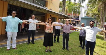 Here they are again, this time social distancing sans T-pose after dropping by Kaki Bukit Market & Food Centre in their ward at Aljunied GRC.