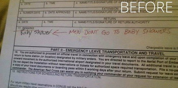 A soldier, whose wife was hosting a baby shower, filled out a document requesting for a leave. He wanted to join his wife in celebrating the arrival of their child, however, his Commanding Officer denied his the right to go to the celebration claiming, “Men don’t go to baby showers.”