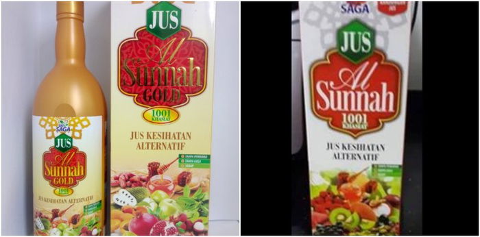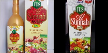 The juices in question are Jus Al Sunnah Gold 1001 Khasiat Jus Alternatif and Jus Al Sunnah 1001 Khasiat Jus Alternatif.