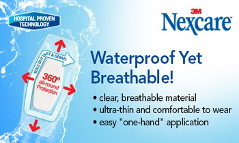 Are you tired of bandages that just do not stick? Made with one of the many technologies that 3M is renowned for, Nexcare™ Waterproof Bandages utilize 3M’s healthcare-proven adhesive that sticks even in moist conditions and releases with virtually no residue. You can be assured that your childs’ wound is truly being well taken care of even while they are bathing or swimming.