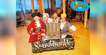 Swashbuckle: This engaging pirate game show features four young Swashbucklers, competing in a series of physical games against the “naughty pirates” led by Captain Sinker and her hapless shipmates Cook and Line, under the watchful eye of Gem and her parrot Squawk.