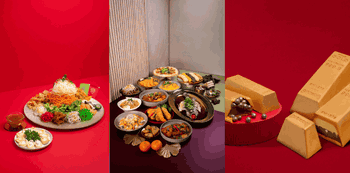Fill up on festive dishes that include Wok-Fried Cereal dishes of Prawn or Crayfish, as well as Braised Chicken with Chestnut, Pumpkin Bisque with Crabmeat, Chicken Bak Kwa Pizza,Cantonese Steamed Sea Bass, Oyster Mee Sua, Unlimited Prosperity Rice, and desserts like NianGao Spring Roll, Cheng Tng and Pineapple Tart–over 20 items in all.
