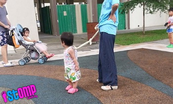 Call it a DIY leash or something to that effect, but this picture made my mind go wild with questions. I wonder what drove mum to attach that makeshift rope to her little boy, in what appeared to be a playground in a housing area. Shouldn’t kids be allowed to run free and explore in ‘safe’ places like the playground outside your block?