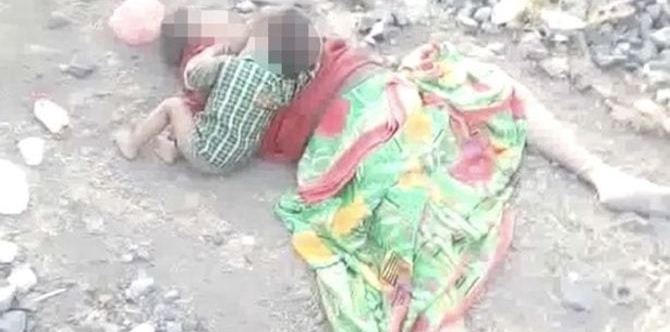 Railway track workers spotted a woman lying near the tracks, a child at her breast, in Damoh district, Madhya Pradesh, central India. Upon reaching the scene, they found that the mother was dead, her 17-month-old crying beside her.