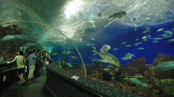There is an 83 meter long enclosed channel that takes visitors along a submerged tunnel having glass windows through which the visitors can look at the diverse marine life.
