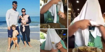 The now viral video was taken when Brock Smith went out to grab a bite with his wife Lauren and their two kids. When Lauren started to breastfeed their 2-month old daughter underneath a blanket, she started getting fussy.