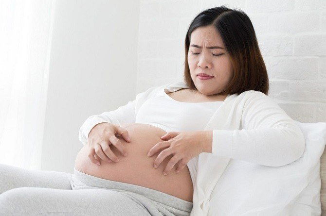 PUPPP is an itchy bump that usually appears on the abdomen, along with stretch marks on the skin, and sometimes on the thighs, buttocks, or arms. This condition is most common in women with their first pregnancy and in mothers carrying twins.