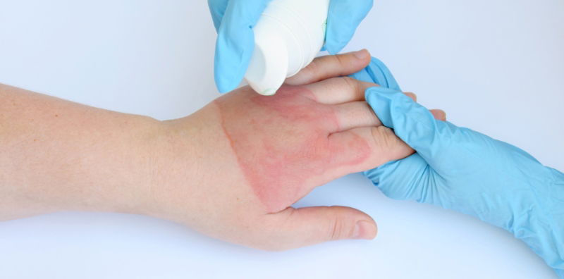 Treatment for skin burns depends on the severity of the burn. If the skin burn is minor, such as a scald from hot water, the following treatments may be used: