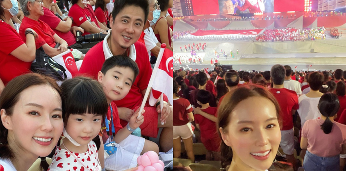 The homegrown actress has been living with her Taiwanese husband Alex Tien and two children in Taiwan since 2015 and this is their first time attending the NDP in person as a family.